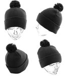 Pom Pom Plain Beanies are 100% knitted acrylic beanies and are available in black and navy. Tight knit, cuffed hem, longer body, mid-weight.