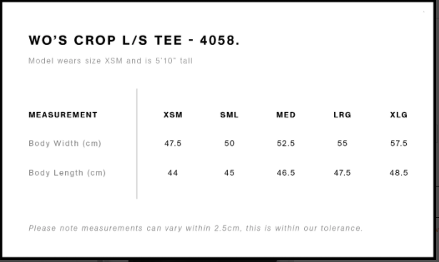 FIT: Relaxed fit - please check the size chart below to avoid disappointment. Lay your own tee flat on a table, measure armpit to armpit across the chest and match to the size you feel is best. Please note measurements can vary within 2.5cm, this is within the accepted tolerance.