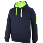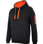 The new JBs 350 Premium Trade Hoodie is a regular fit heavyweight hoodie with pen pocket on left sleeve. Two hi vis colours available, navy/lime and black/orange.
