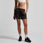 Elastic waist with external drawcord, 2 x side pockets, 1 x back pocket with zip, shorter length, split sides for ease of movement