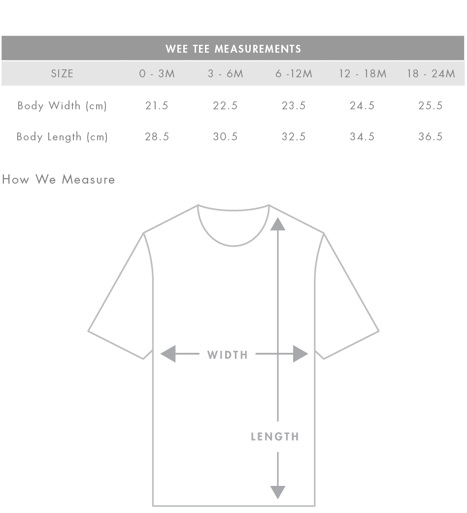 FIT: Regular fit - please check the size chart to avoid disappointment. Lay your own singlet/tee flat on a table, measure armpit to armpit across the chest and match to the size you feel is best. Please note measurements can vary within 2.5cm, this is within the accepted tolerance.